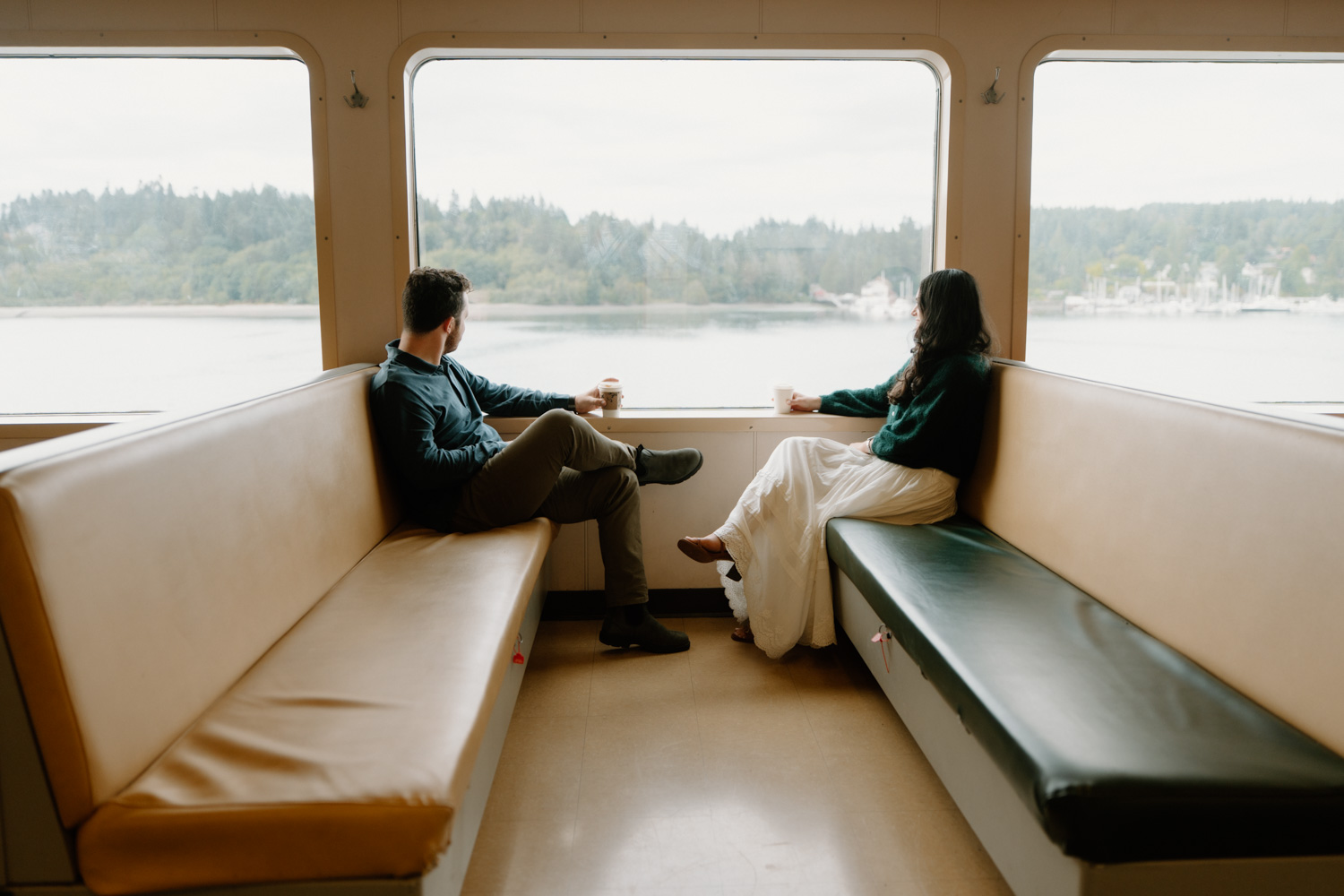 To the extent possible, we really wanted most of the ferry to ourselves for this shoot. It’s hard to feel really “in the moment” with swarms of sleepy commuters or nosy tourists looking at you. So, we planned to take the very first ferry to Bainbridge on a crisp Monday morning, starting just after 6am (it was worth it, I promise.