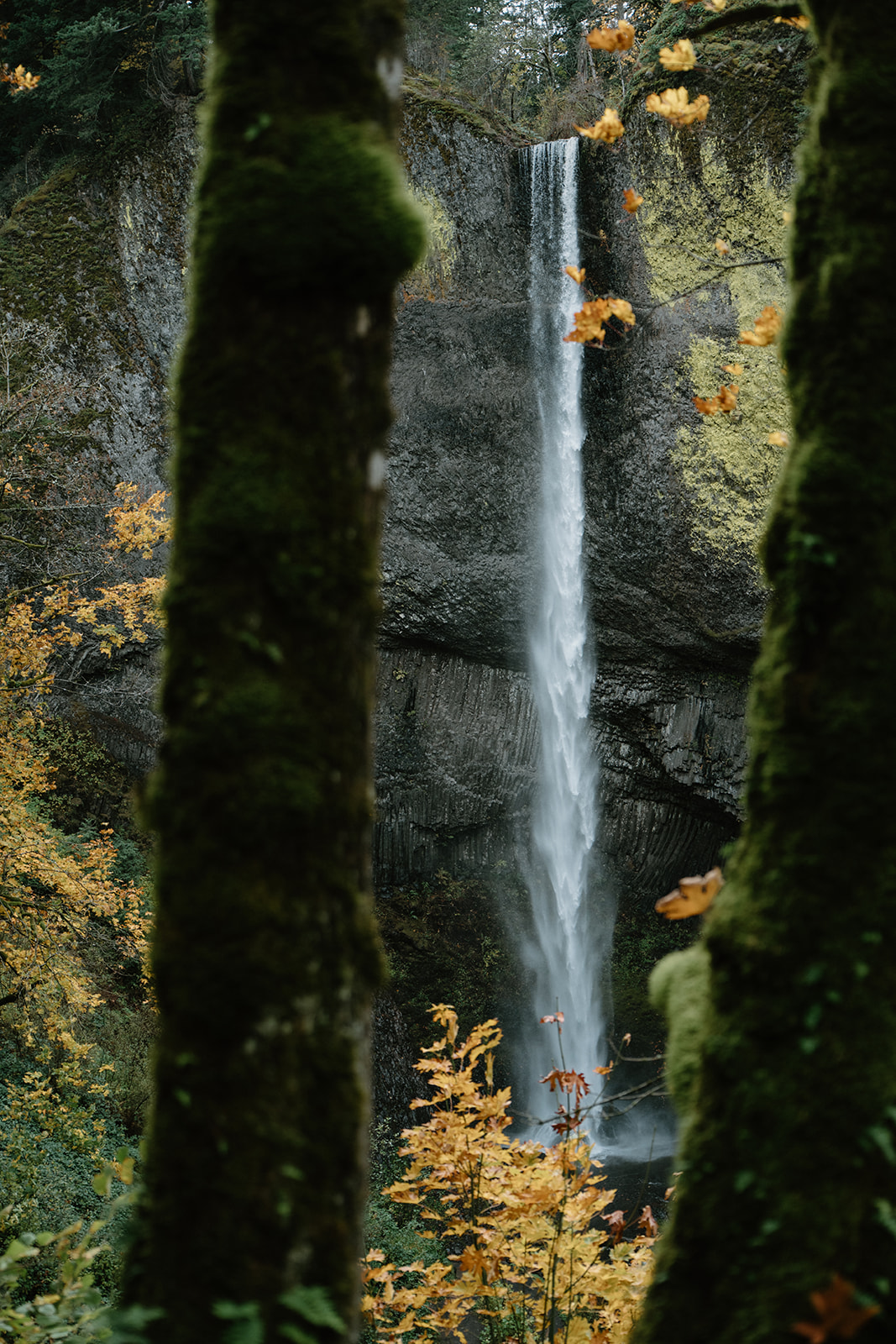 Latourell Falls is an extremely accessible waterfall – located at the end of a short, paved path. For folks who’d rather not hike, it’s the perfect spot to still get incredible photos. However, for those who have a little bit of adventure in their bones, it’s also relatively easy to navigate to the base of the falls. I’m glad these two were up for a bit of a scramble – we were all so damp afterwards, but the photos turned out so beautifully.
